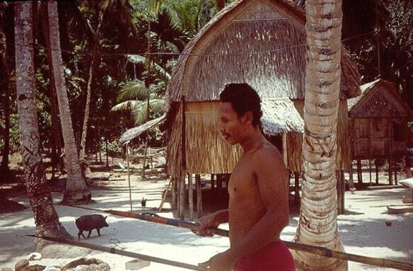 A Mongoloid group native to Great Nicobar. Traditionally nomadic, subsisting on hunting pigs and foraging, they now accept limited government aid but maintain a preferring for isolation, living in makeshift huts inland.